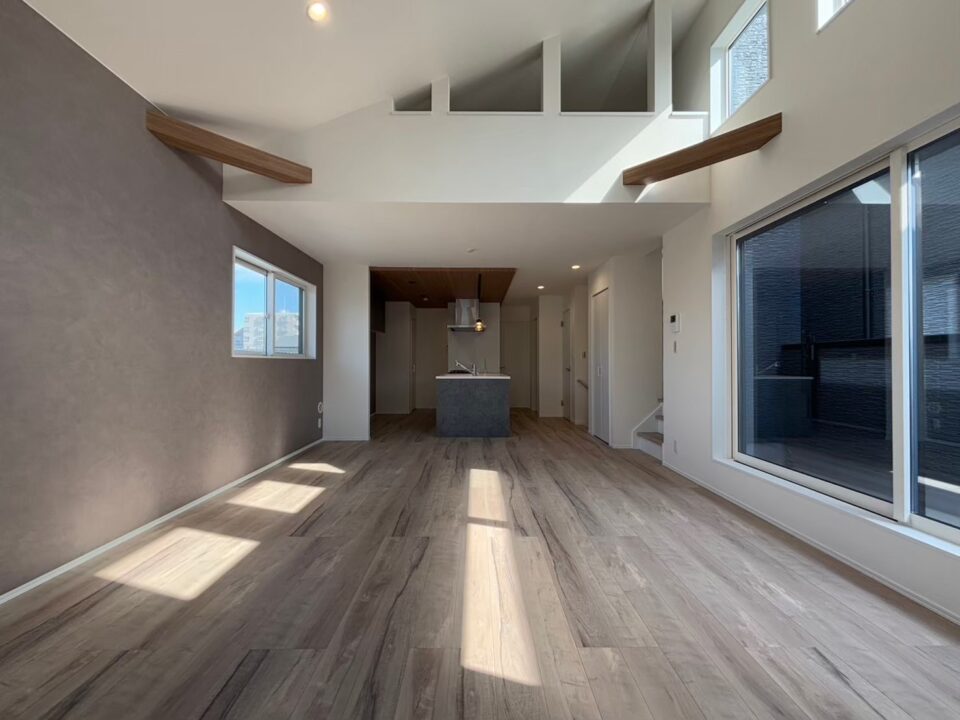 ・LDK19.6帖の広々空間 ・リビング勾配天井+ロフト付きで解放感抜群 ・カースペース1台 ・シューズイン・ウォークイン・パントリー等収納力◎ ・スーパーやコンビニなど周辺環境◎ ・小学校徒歩9分 ・地震が来ても安心の制震ダンパー付き